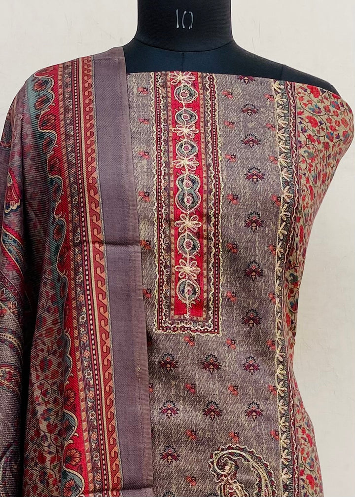 Beige Woollen Pashmina Suit Length 3 Piece With Woollen Pashmina Shawl