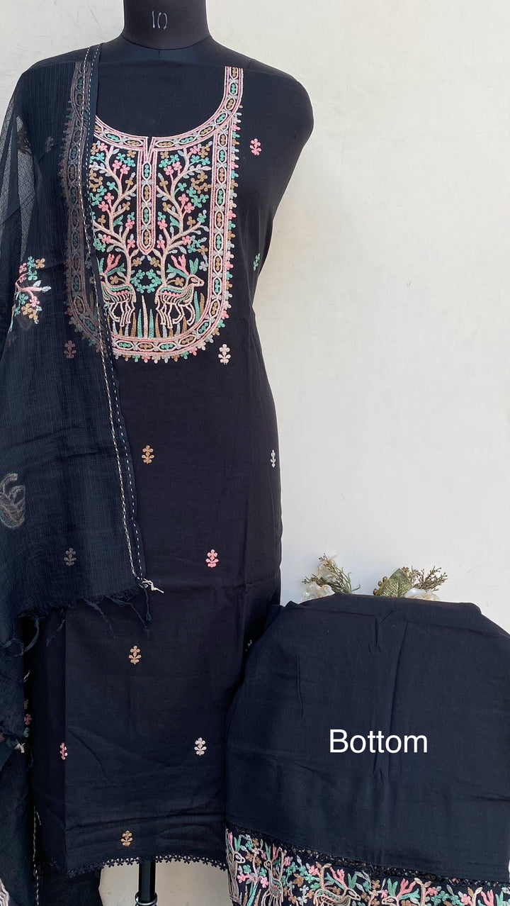 Black Woollen Pashmina Suit Length 3 Piece With Embroidered Kota Dupatta & Same Colour Pashmina Bottom
