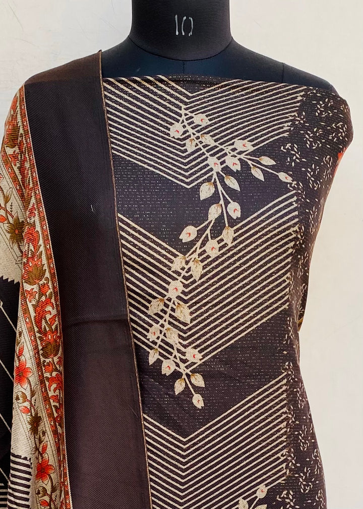 Brown Woollen Pashmina Suit Length 3 Piece With Woollen Pashmina Shawl