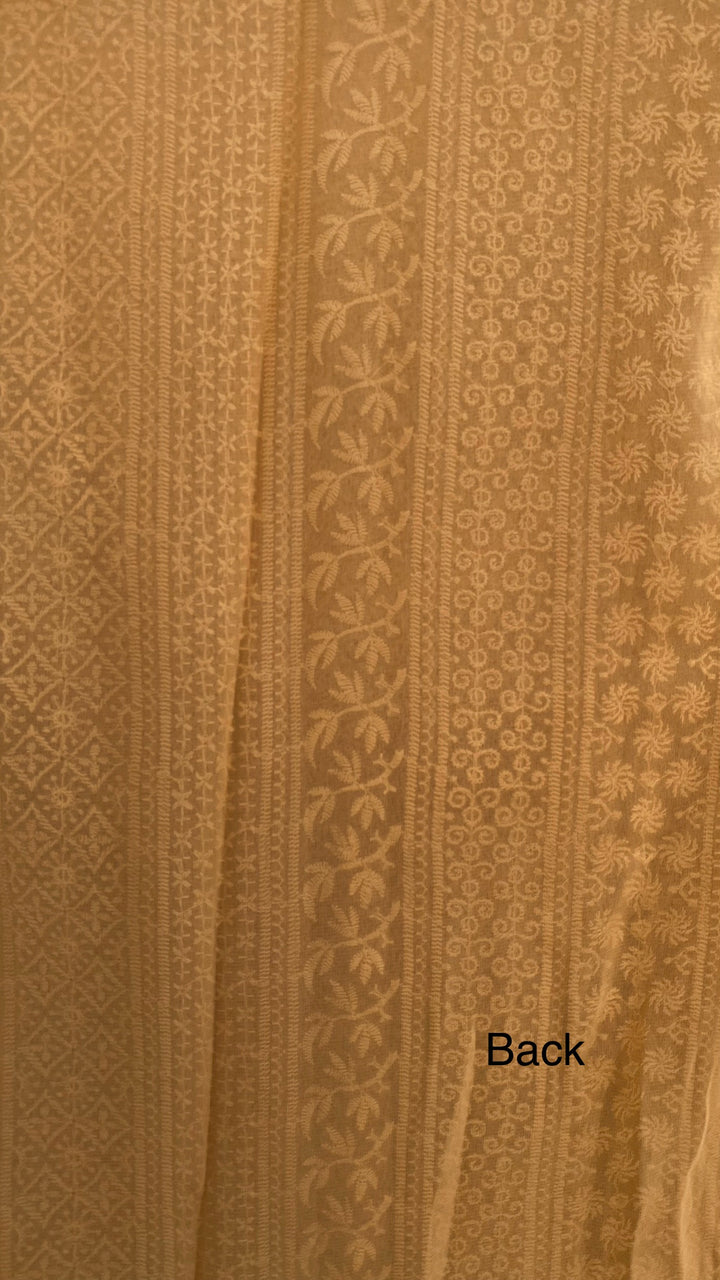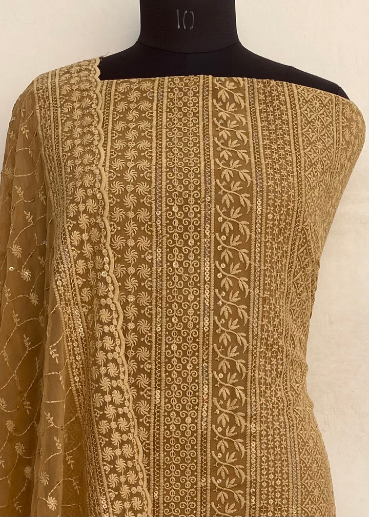 Chikankari Suit Length 3 Piece Brown Georgette With Embroidered Georgette Dupatta & Same Colour Santoon Bottom