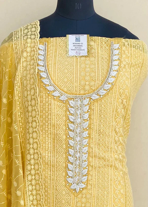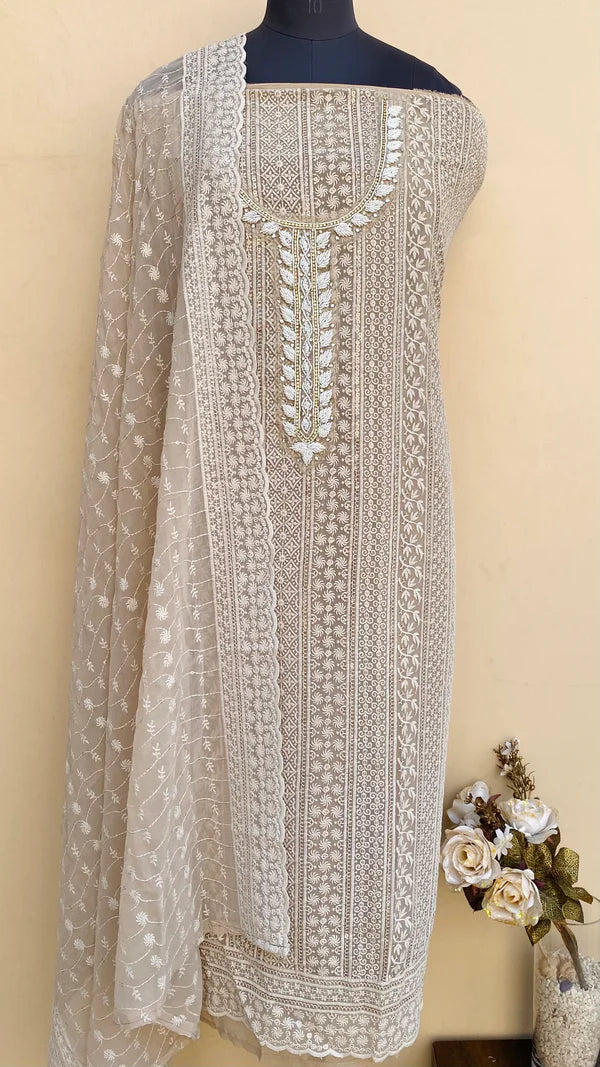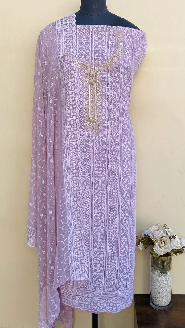 Chikankari Suit Length 3 Piece Georgette With Pearl Work