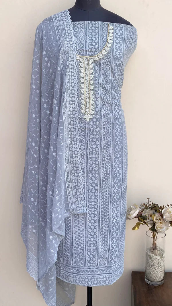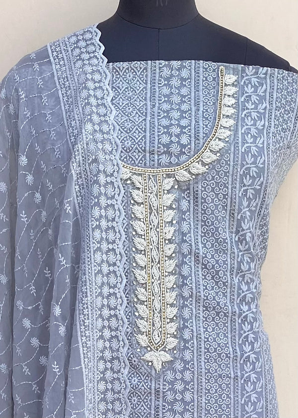 Chikankari Suit Length 3 Piece Georgette With Pearl & Cutdana Work