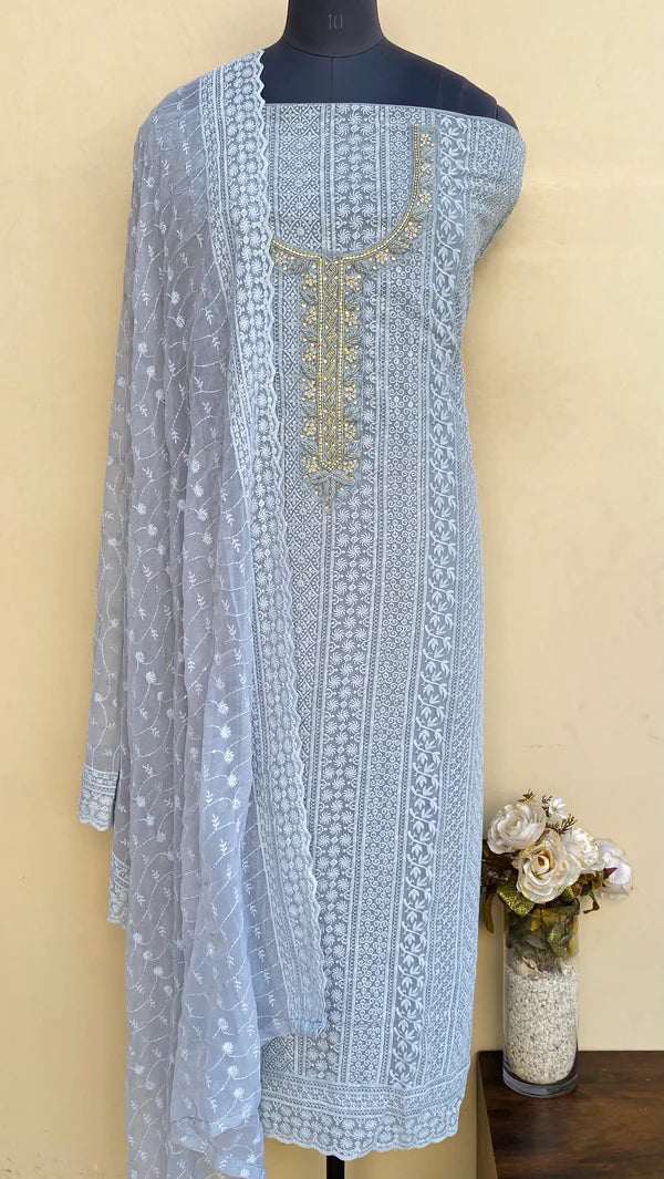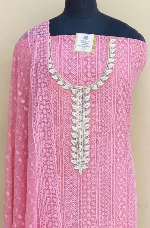 Chikankari Suit Length 3 Piece Georgette With Pearl Work