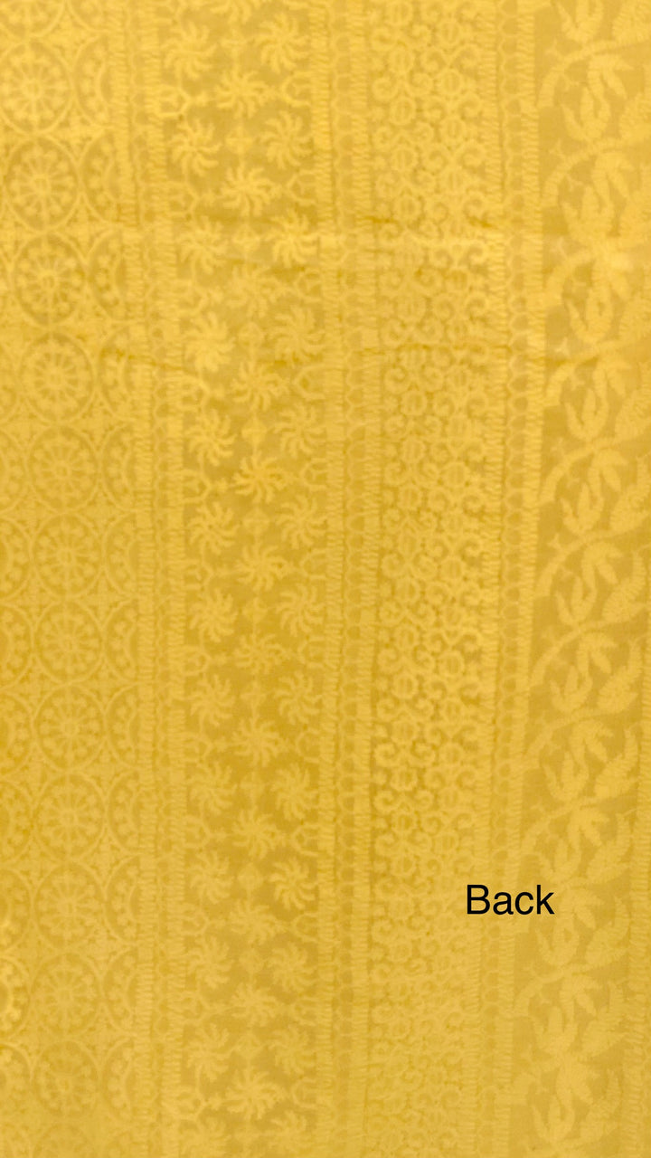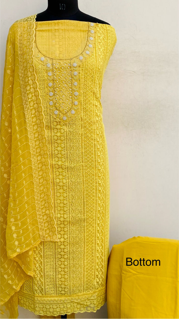 Chikankari Suit Length 3 Piece Mustard Georgette With Pearl & Cutdana Work With Embroidered Georgette Dupatta & Same Colour Santoon Bottom
