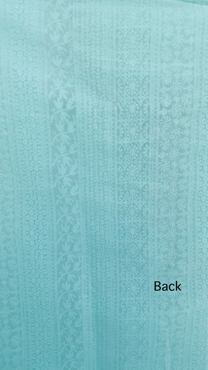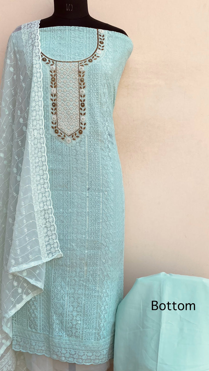 Chikankari Suit Length 3 Piece Sea Green Georgette With Pearl & Cutdana Work With Embroidered Georgette Dupatta & Same Colour Santoon Bottom