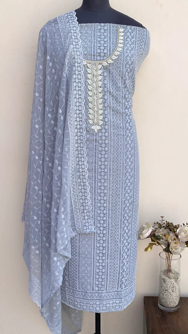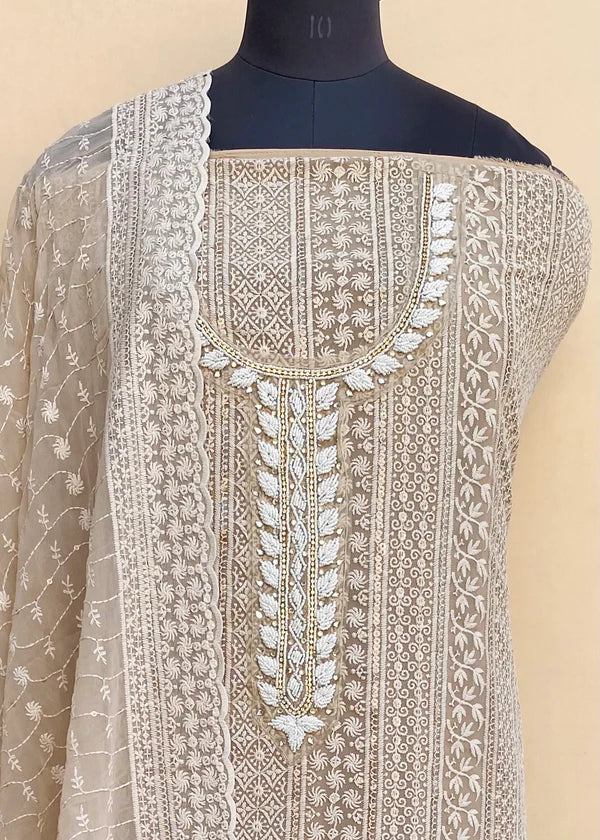 Chikankari Suit Length 3 Piece Georgette With Pearl Work
