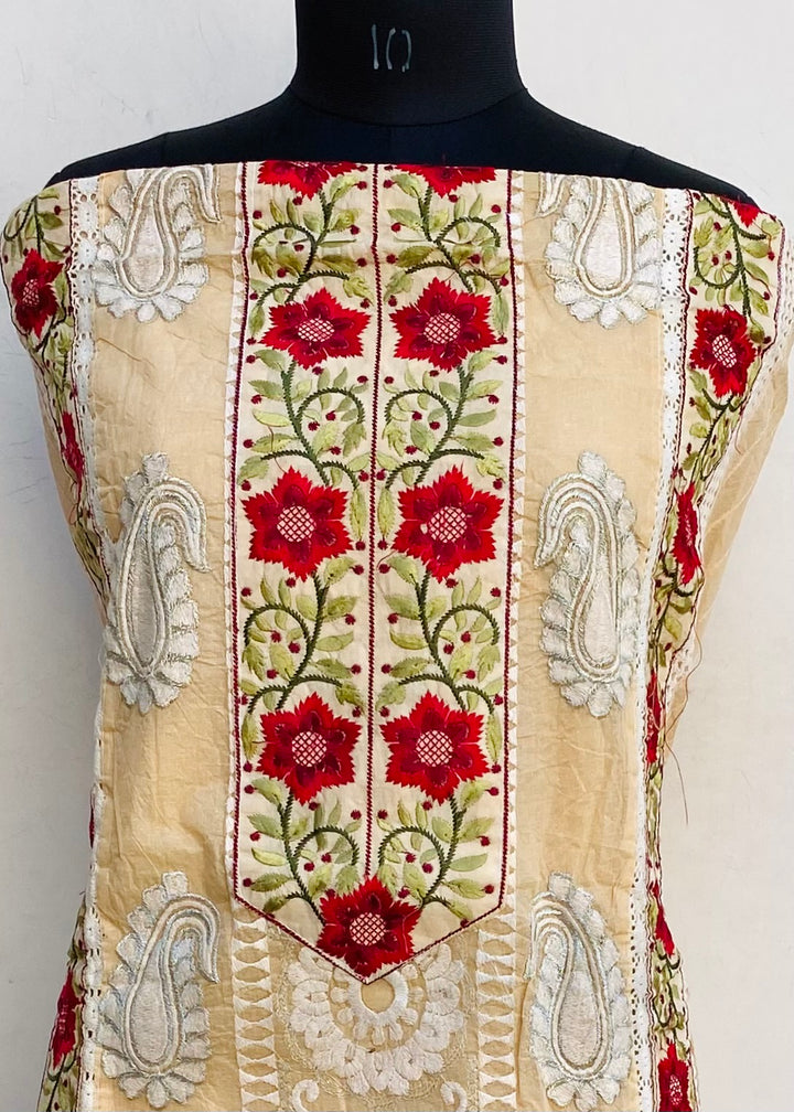 Designer Embroidered Suit Length 2 Piece Beige Mal Cotton