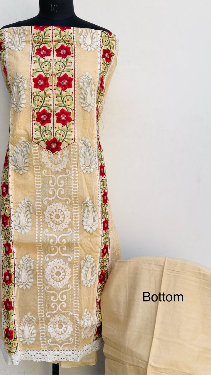 Designer Embroidered Suit Length 2 Piece Beige Mal Cotton & Same Colour Cotton Bottom