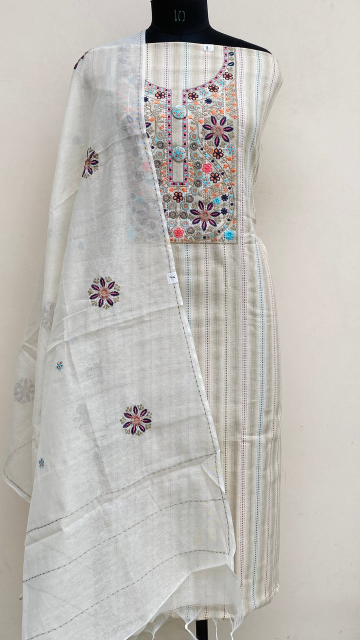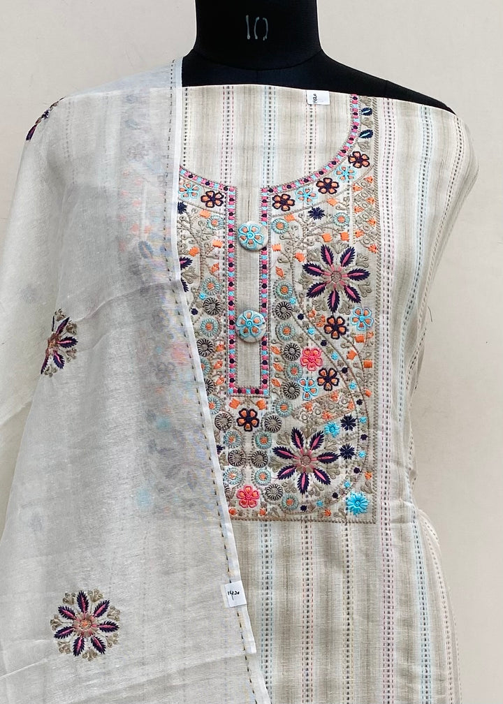 Designer Embroidered Suit Length 3 Piece Beige Linen
