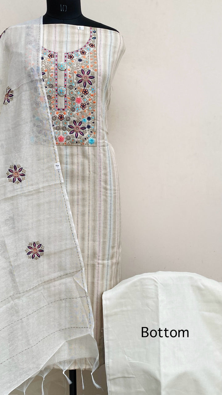 Designer Embroidered Suit Length 3 Piece Beige Linen With Embroidered Linen Dupatta & Same Colour Cotton Bottom