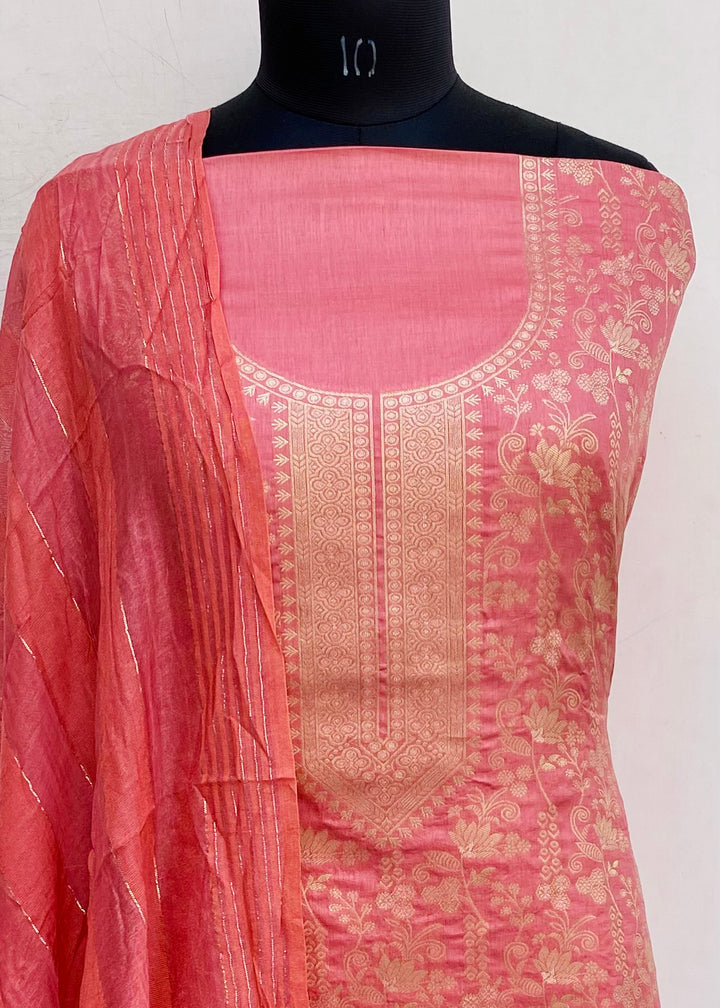 Designer Embroidered Suit Length 3 Piece Copper Mal Chanderi