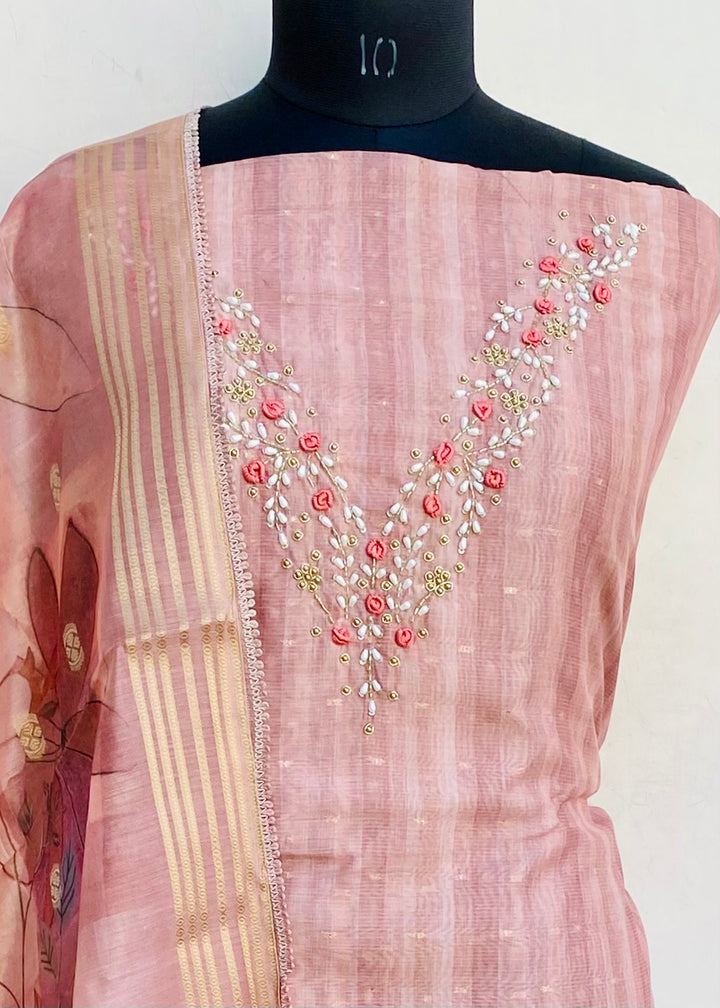 Designer Embroidered Suit Length 3 Piece Copper Mal Chanderi With Cutdana & Pearl Work