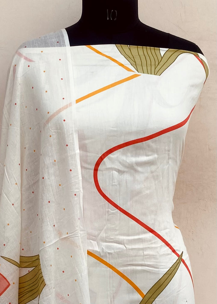 Designer Embroidered Suit Length 3 Piece Cream Mal Cotton