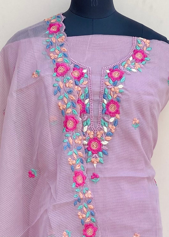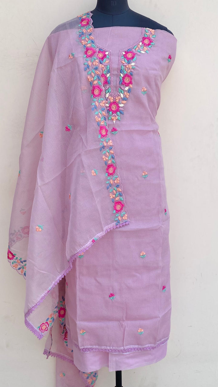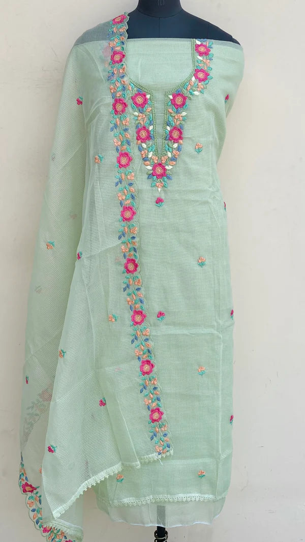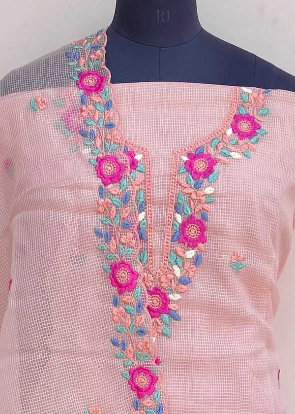 Designer Embroidered Suit Length 3 Piece Kota With Embroidered Kota Dupatta & Same Colour Cotton Bottom