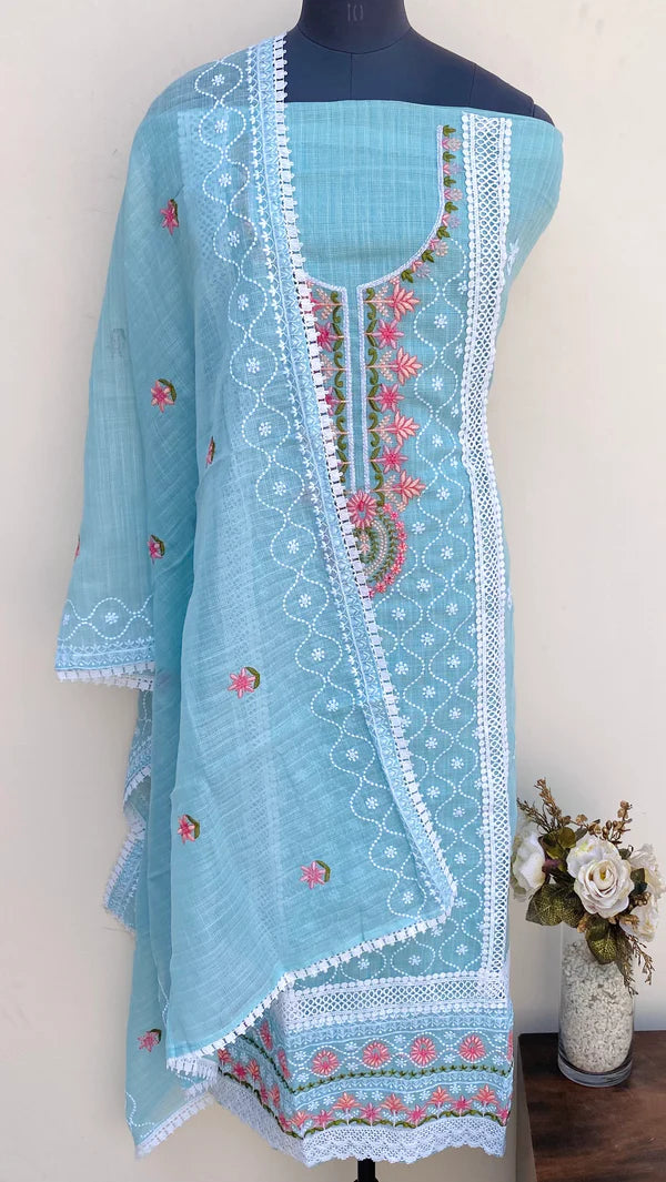 Designer Embroidered Suit Length 3 Piece Kota With Embroidered Kota Dupatta & Same Colour Cotton Bottom