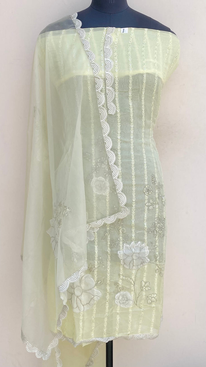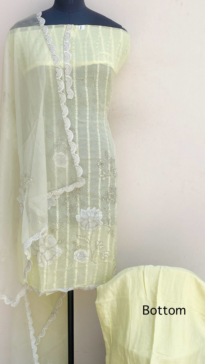 Designer Embroidered Suit Length 3 Piece Lemon Yellow Organza With Sequence Work With Embroidered Organza Dupatta & Same Colour Cotton Bottom