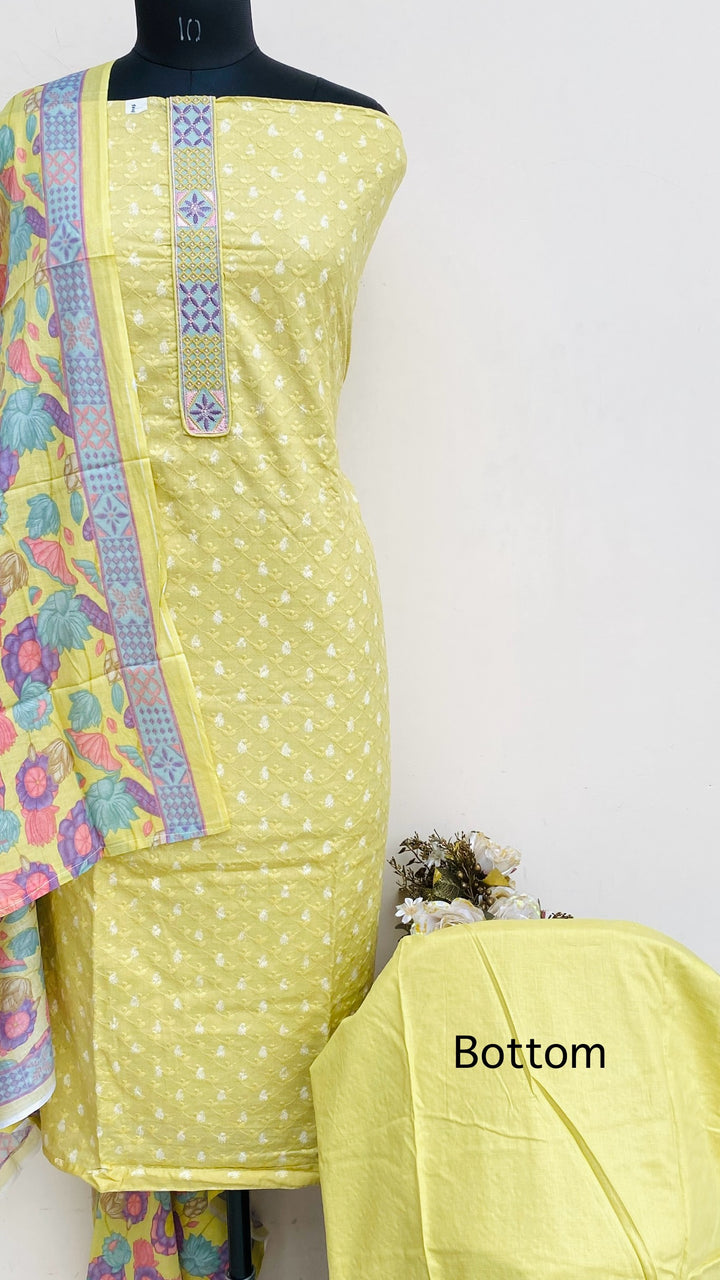 Designer Embroidered Suit Length 3 Piece Mehndi Green Mal Cotton With Printed Mal Cotton Dupatta & Same Colour Cotton Bottom