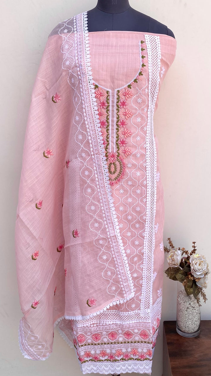 Designer Embroidered Suit Length 3 Piece Kota With Embroidered Kota Dupatta & Same Colour Cotton Bottom