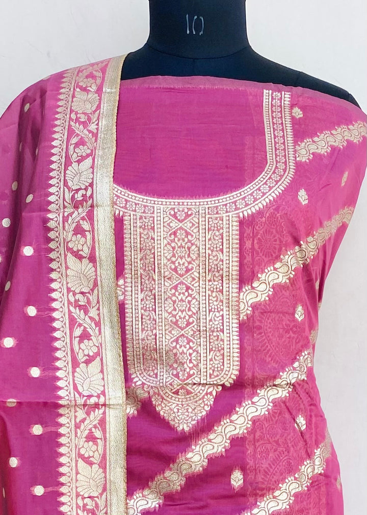Designer Embroidered Suit Length 3 Piece Pink Mal Chanderi