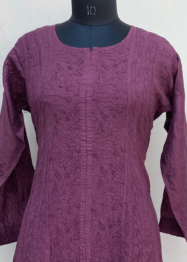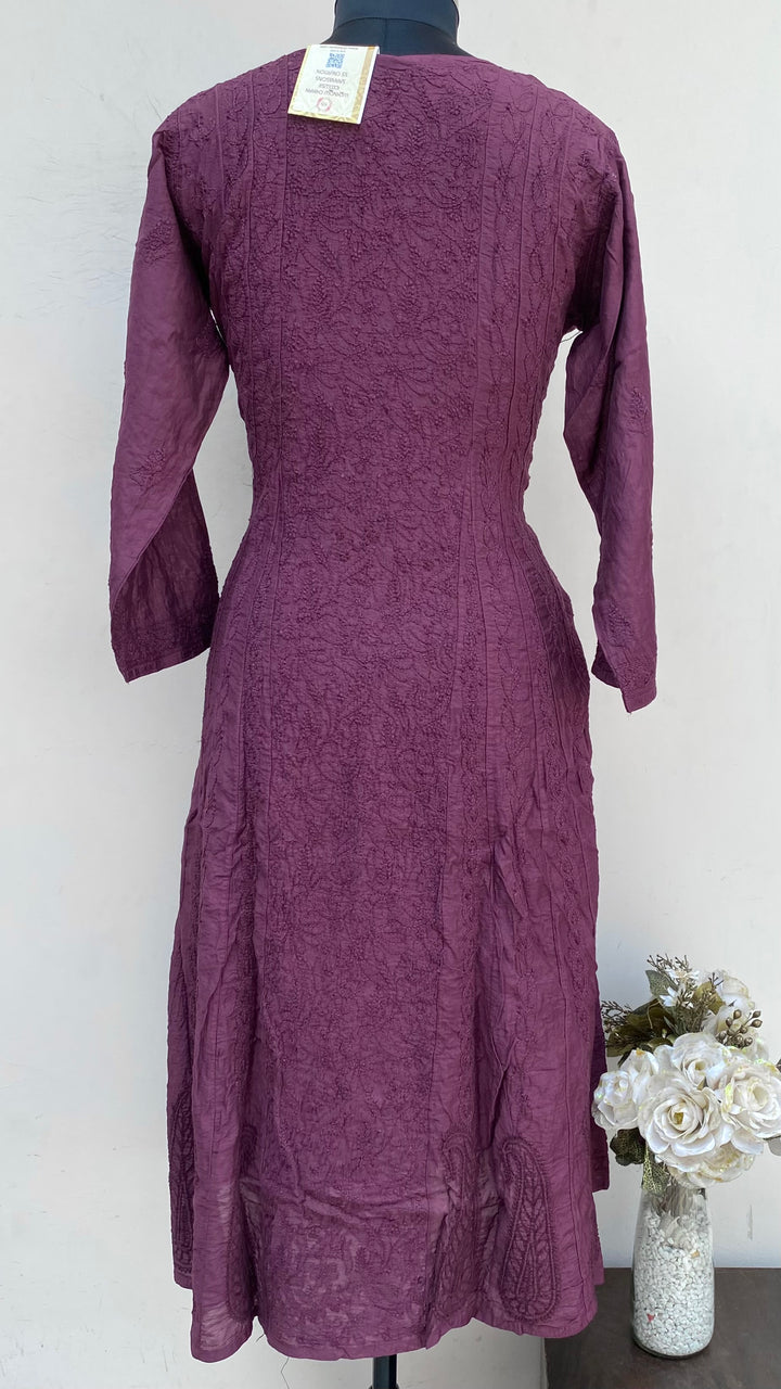 Lucknowi Chikankari Anarkali Kurti Maroon Mal Chanderi With Self Work