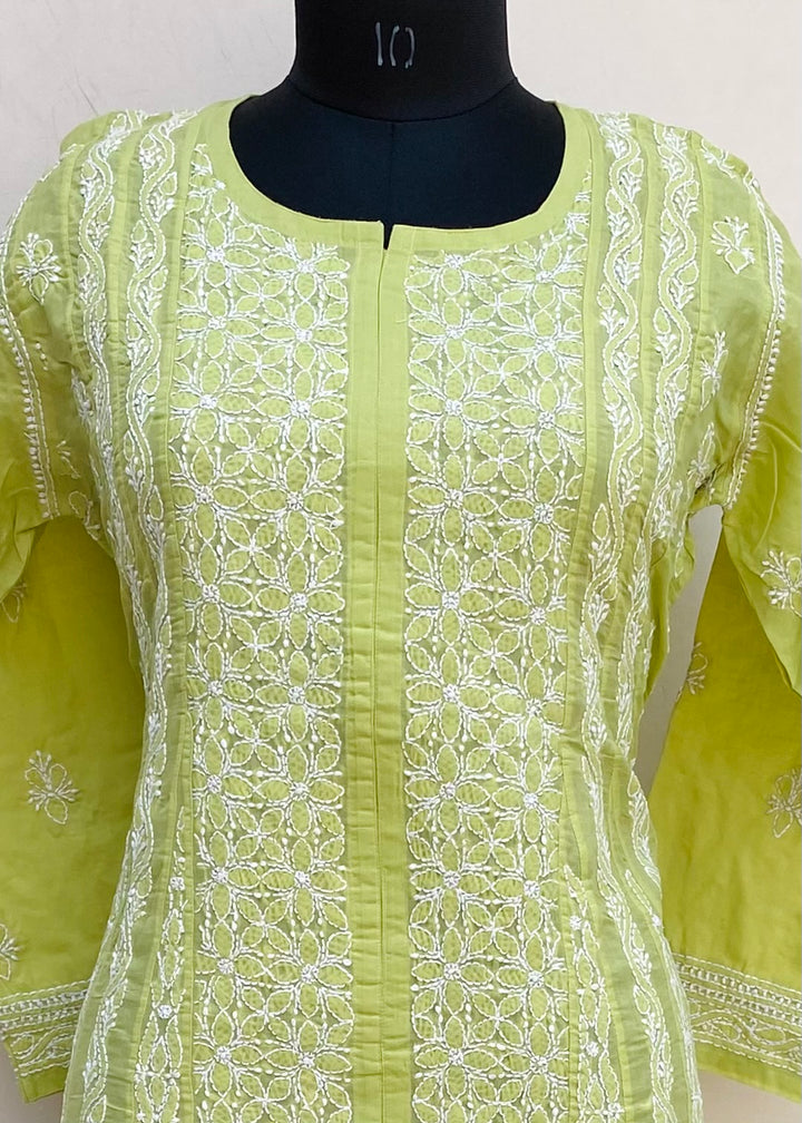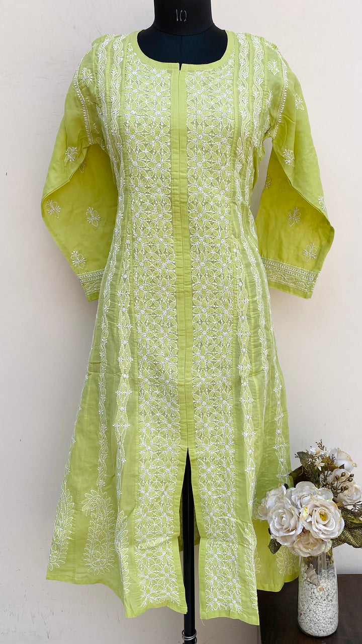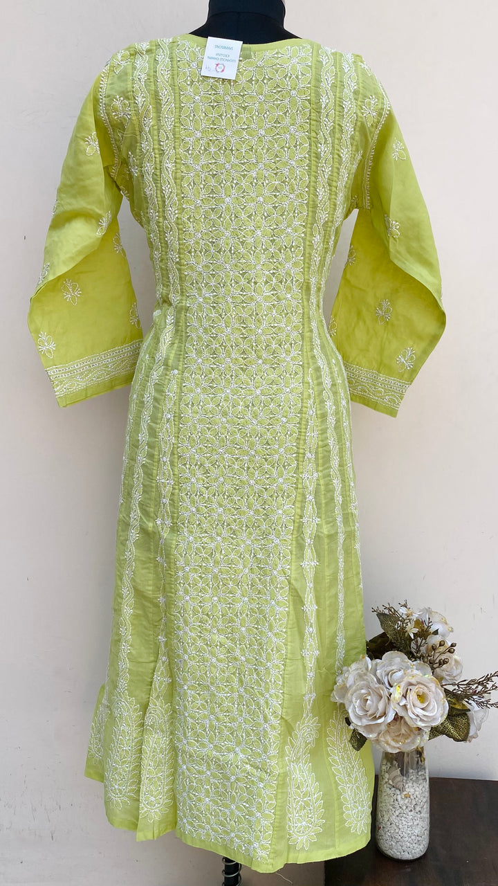 Lucknowi Chikankari Anarkali Kurti Parrot Green Cotton