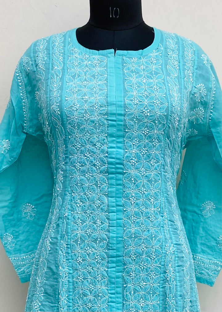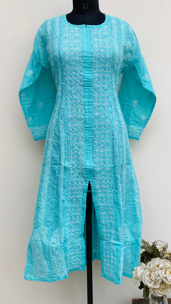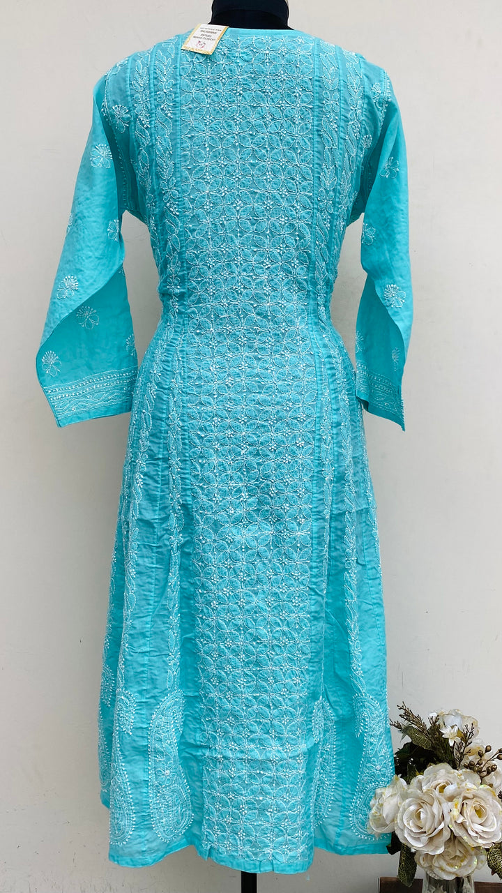 Lucknowi Chikankari Anarkali Sea Green Cotton