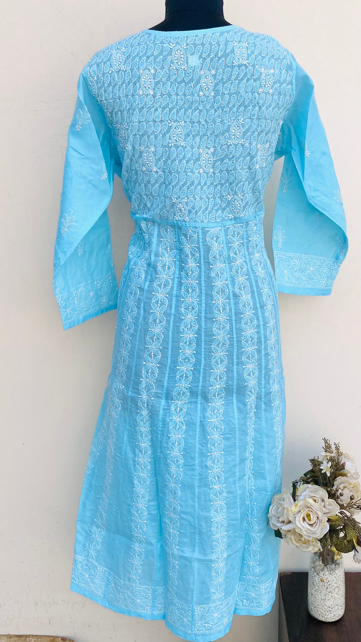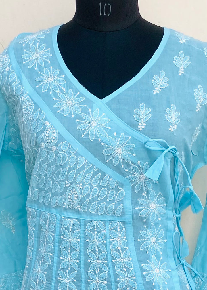 Lucknowi Chikankari Angrakha Kurti Blue Cotton