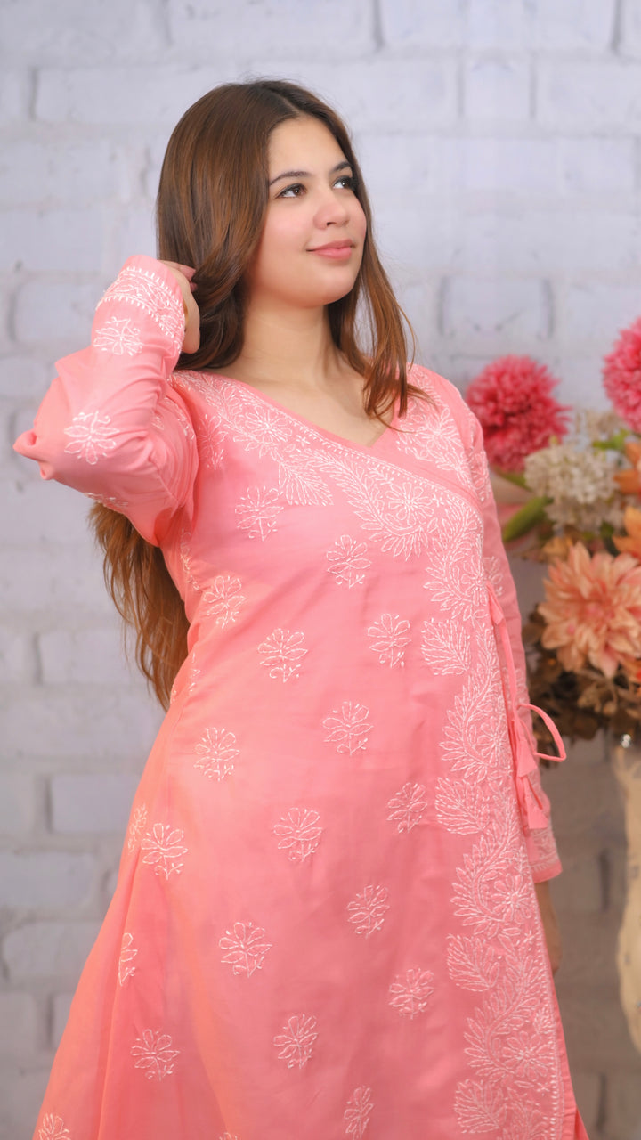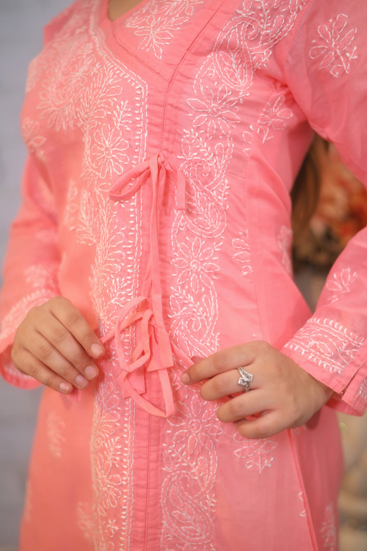 Lucknowi Chikankari Angrakha Kurti Gajri Cotton