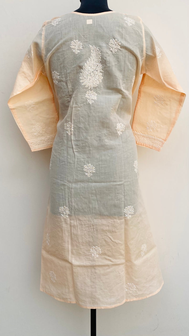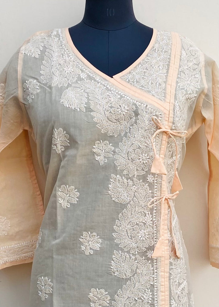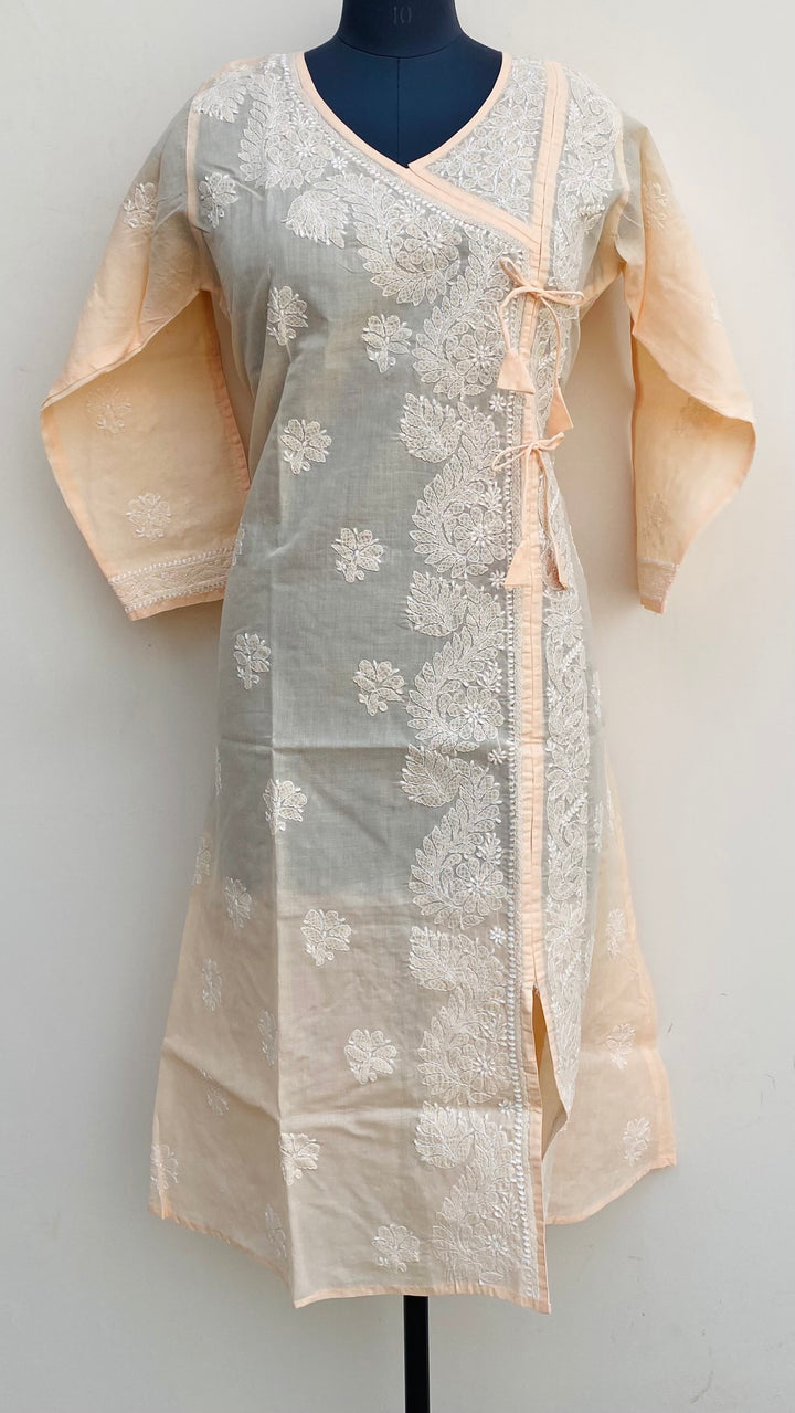 Lucknowi Chikankari Angrakha Kurti Peach Cotton
