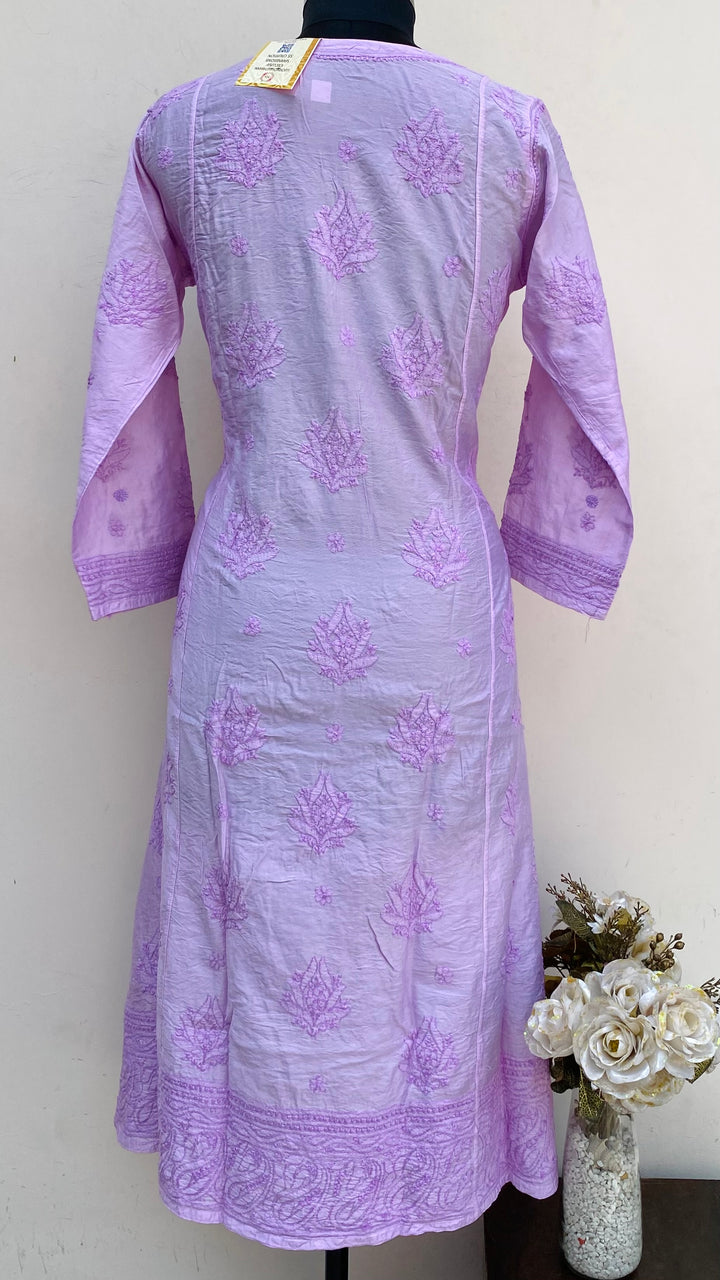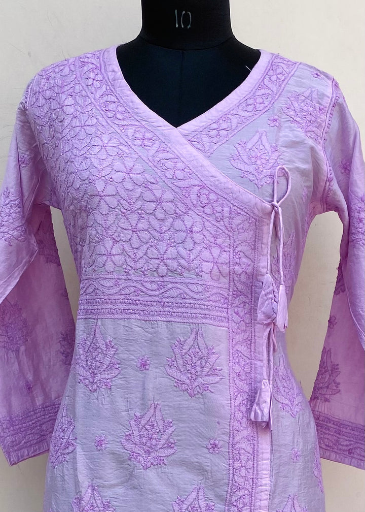 Lucknowi Chikankari Angrakha Kurti Purple Mal Chanderi With Self Work