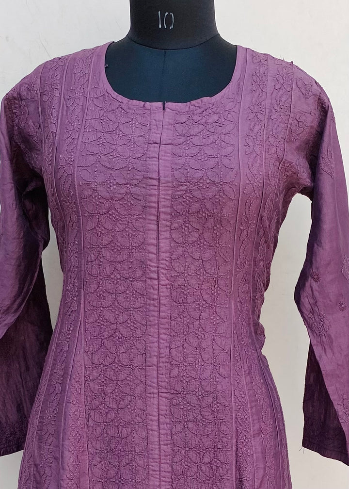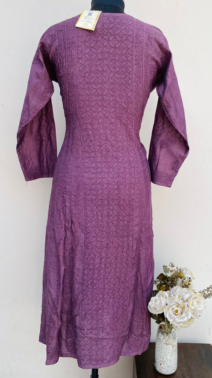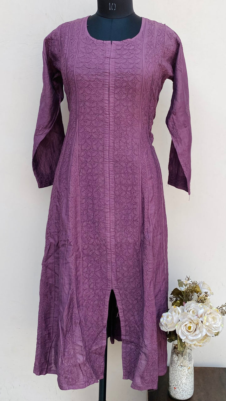 Lucknowi Chikankari Anarkali Kurti Purple Mal Chanderi With Self Work