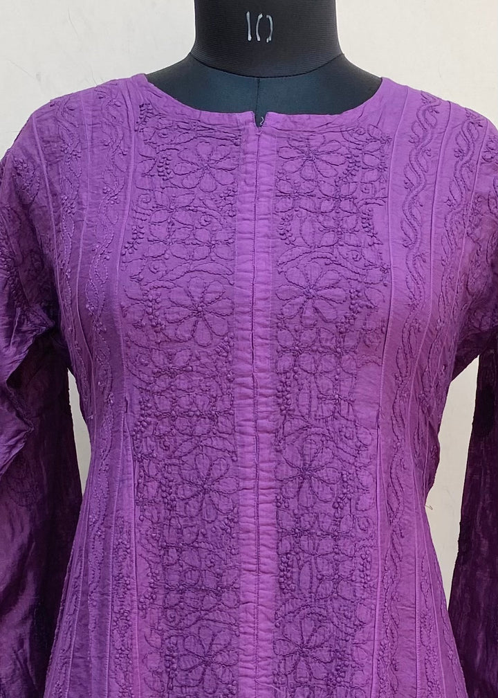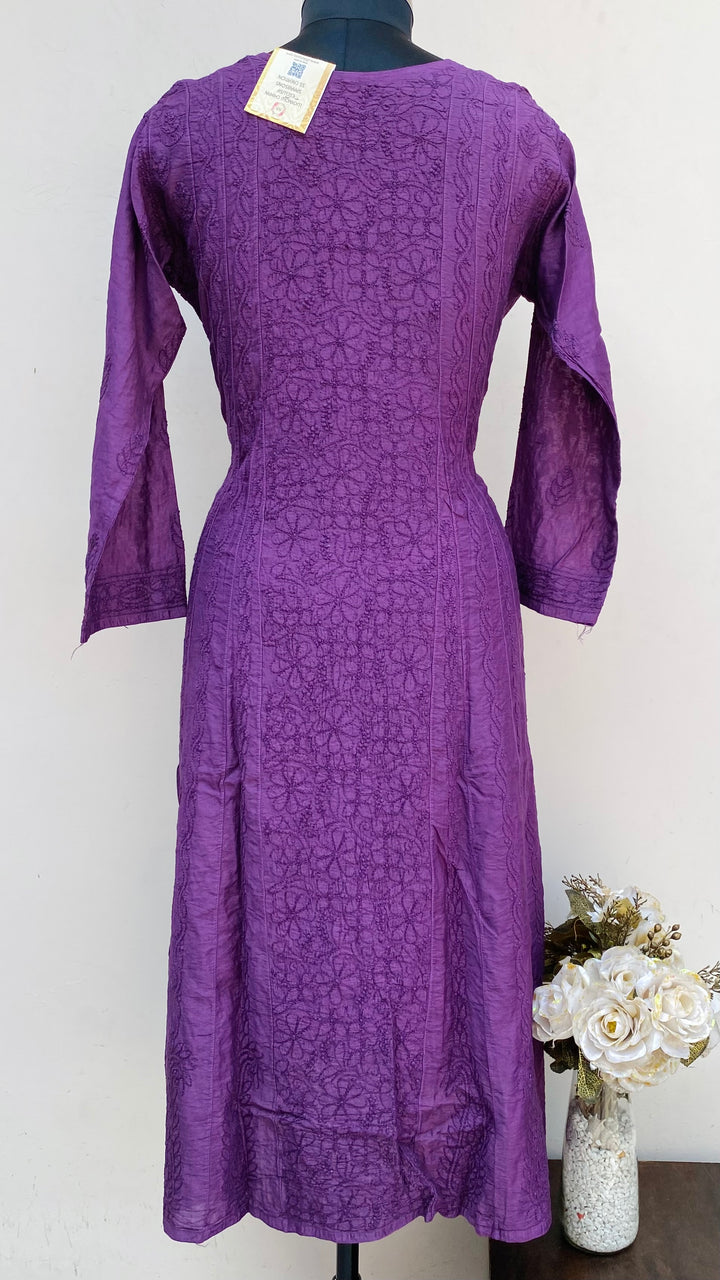 Lucknowi Chikankari Anarkali Kurti Purple Mal Chanderi With Self Work