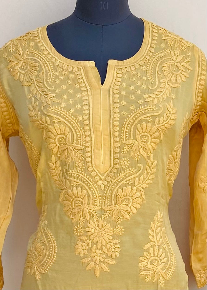 Lucknowi Chikankari Co-ord Set Beige Muslin Cotton With Self 3D Work
