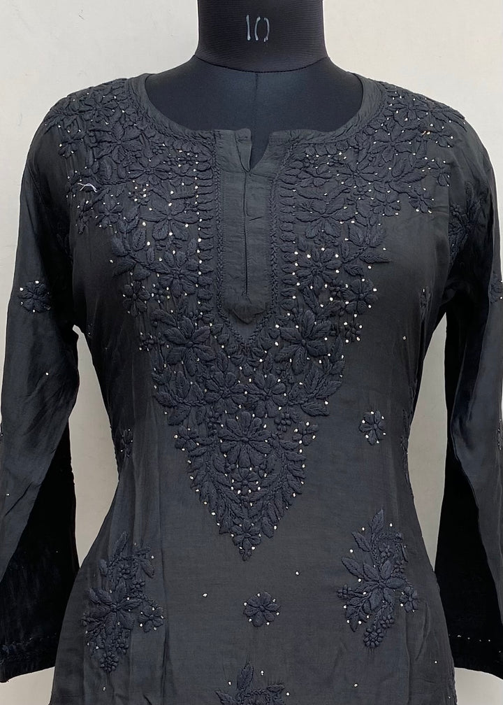 Lucknowi Chikankari Co-ord Set Black Muslin Cotton With Mukaish & Self Work