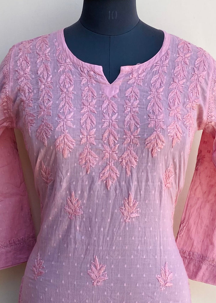 Lucknowi Chikankari Co-ord Set Copper Mulmul Cotton With Self Work