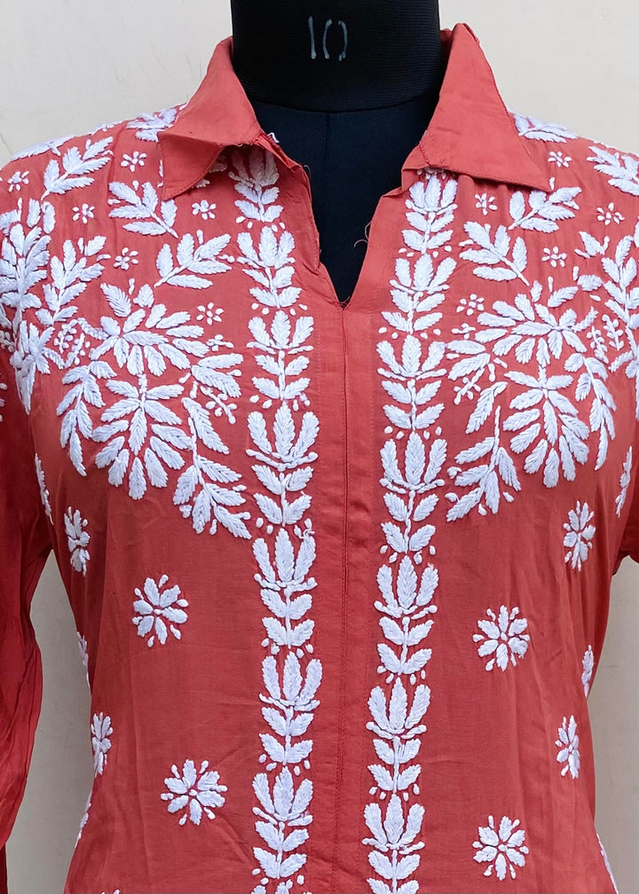 Lucknowi Chikankari Co-ord Set Copper Muslin Cotton