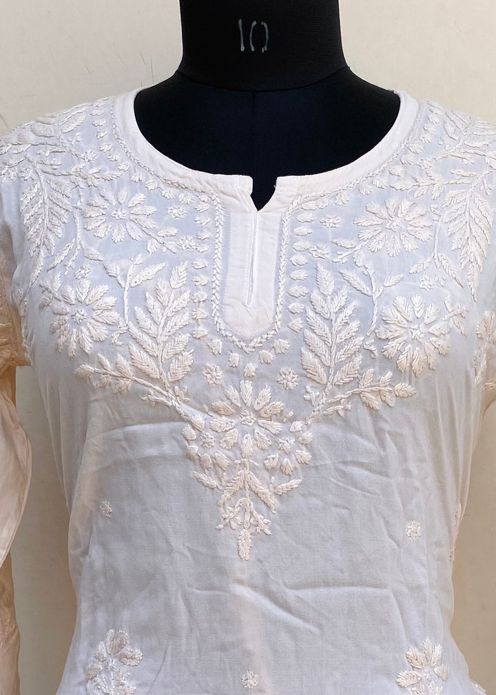Lucknowi Chikankari Co-ord Set Cream Modal Cotton With Self Work