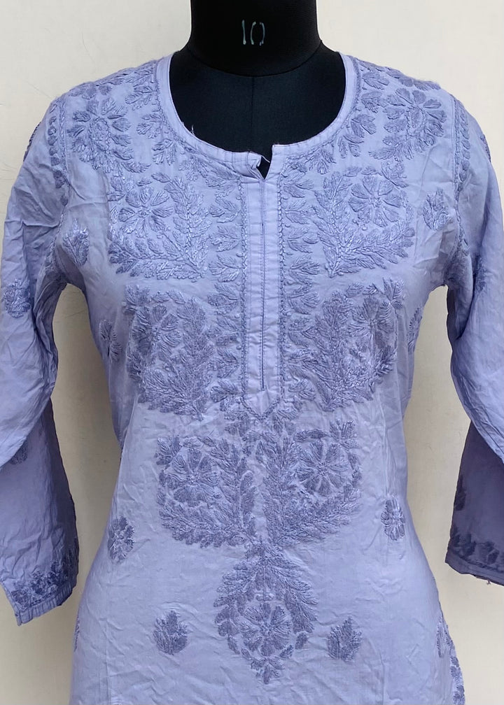 Lucknowi Chikankari Co-ord Set Gray Mal Chanderi With Self Work