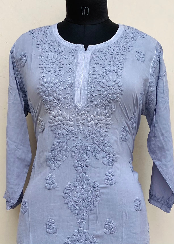 Lucknowi Chikankari Co-ord Set Gray Mulmul Cotton With Self Work