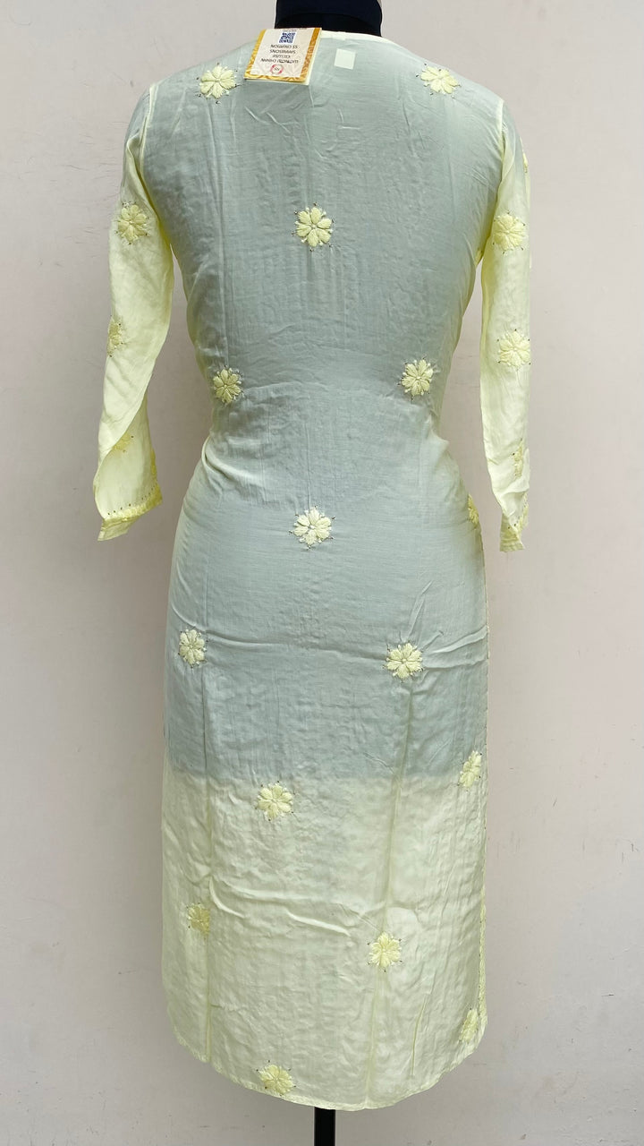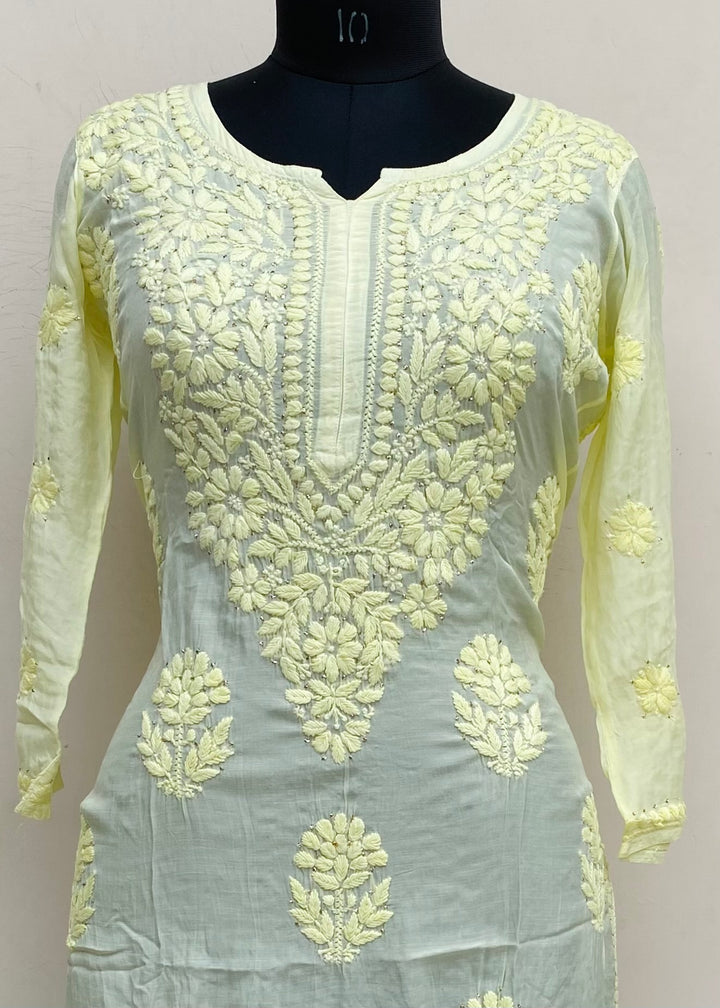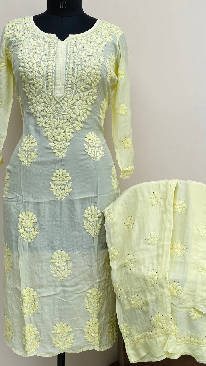 Lucknowi Chikankari Co-ord Set Lemon Yellow Muslin Cotton With Self & Mukaish Work