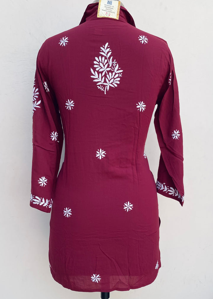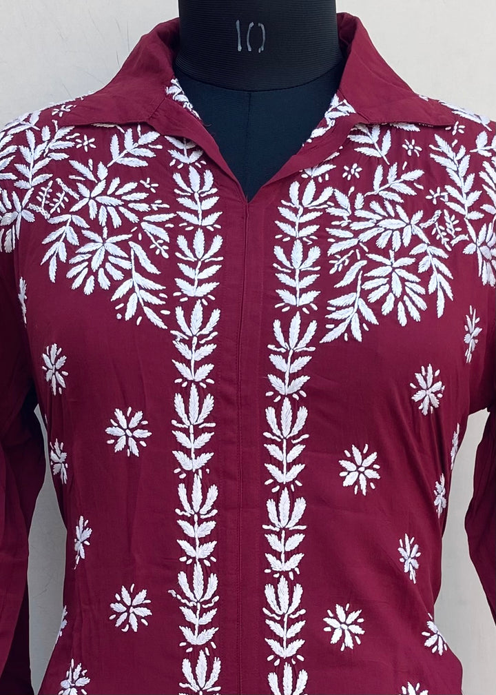 Lucknowi Chikankari Co-ord Set Maroon Muslin Cotton