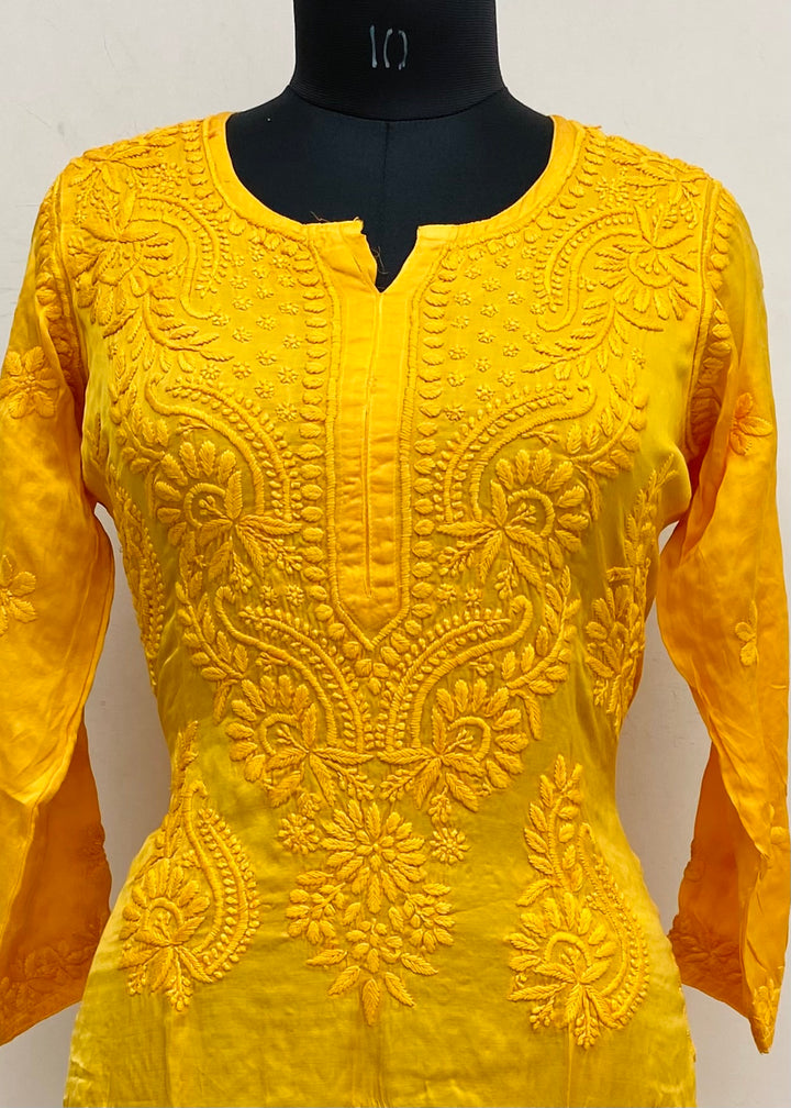 Lucknowi Chikankari Co-ord Set Mustard Muslin Cotton With Self 3D Work