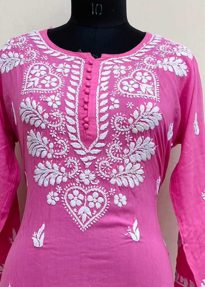 Lucknowi Chikankari Co-ord Set Pink Modal Cotton