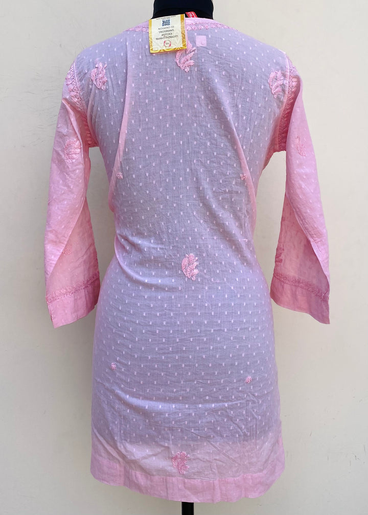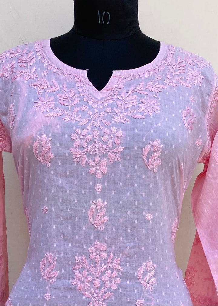 Lucknowi Chikankari Co-ord Set Pink Mulmul Cotton With Self Work