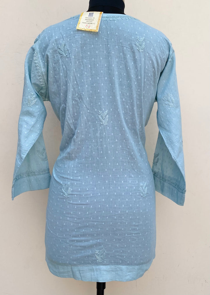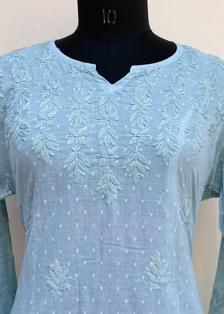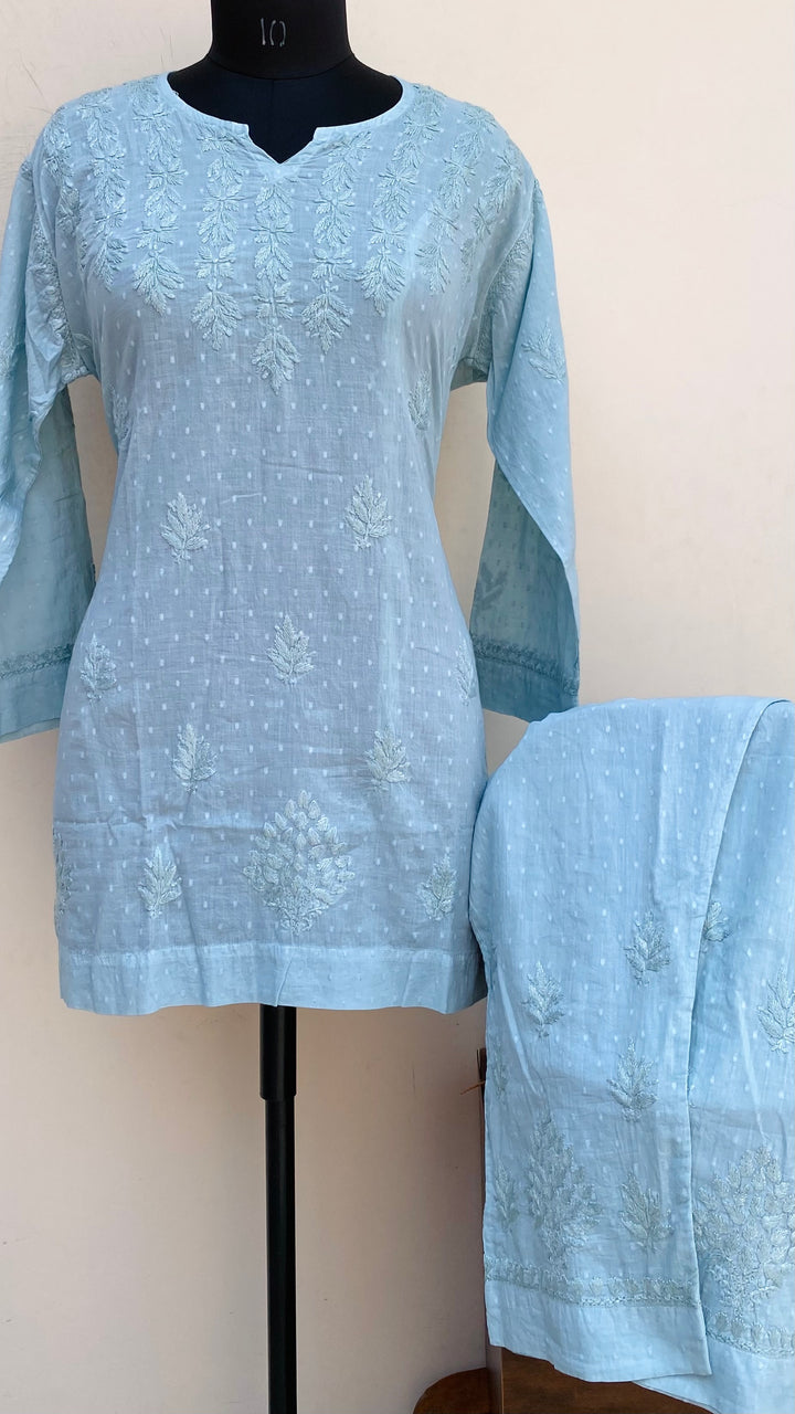 Lucknowi Chikankari Co-ord Set Aqua Blue Mulmul Cotton With Self Work