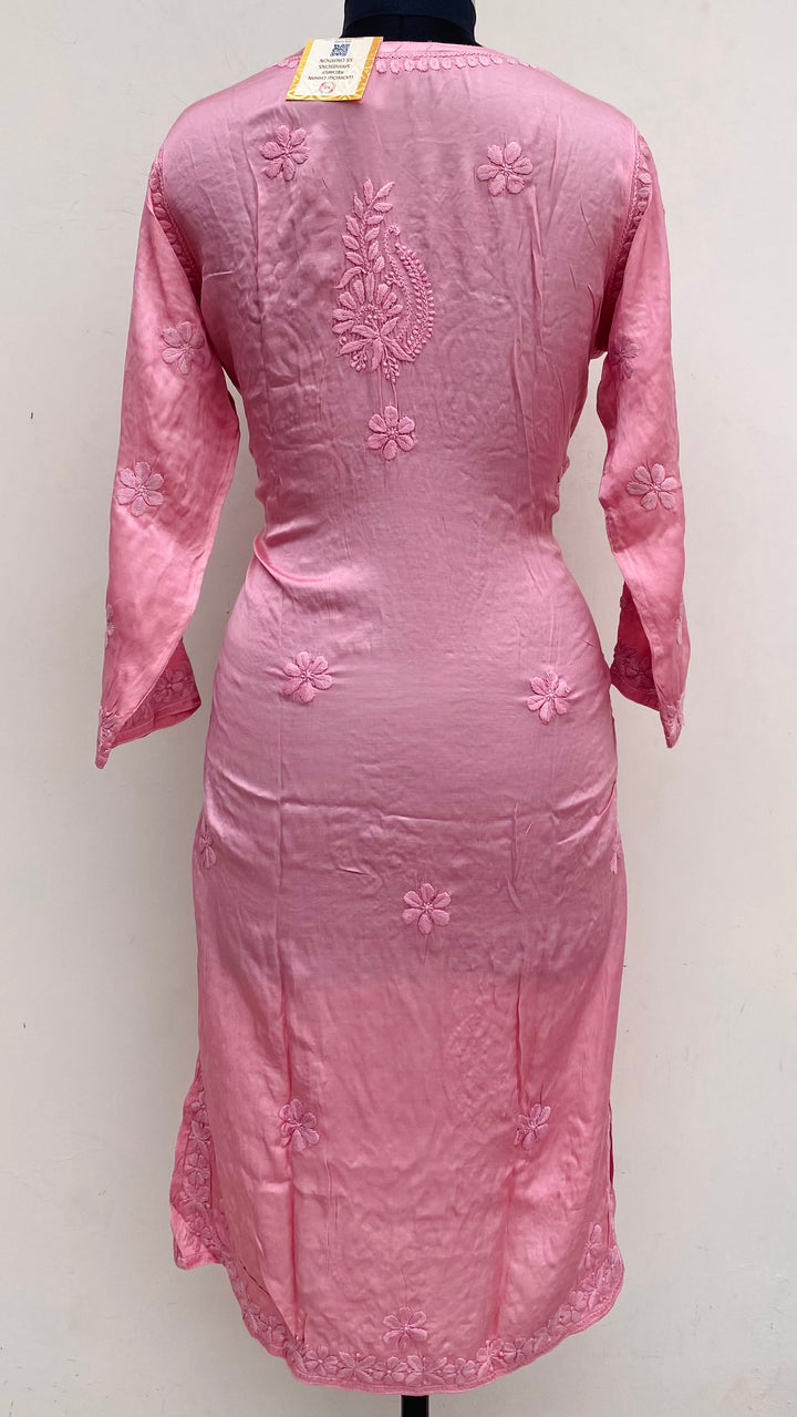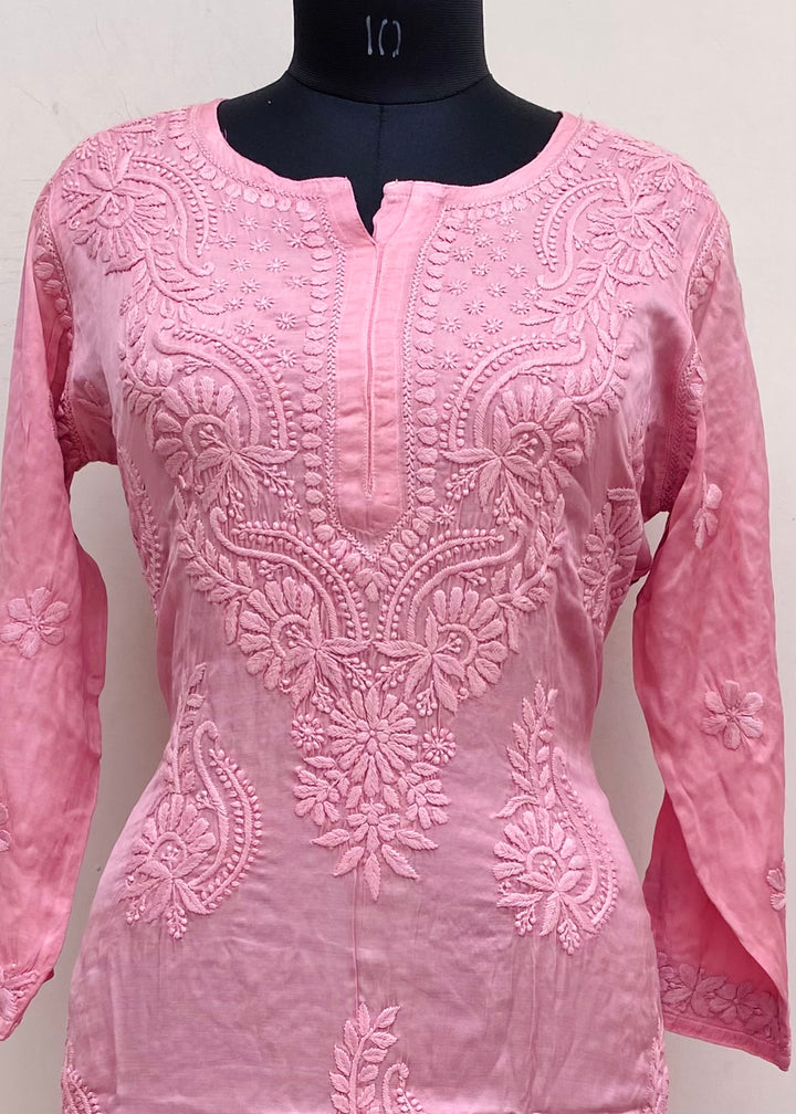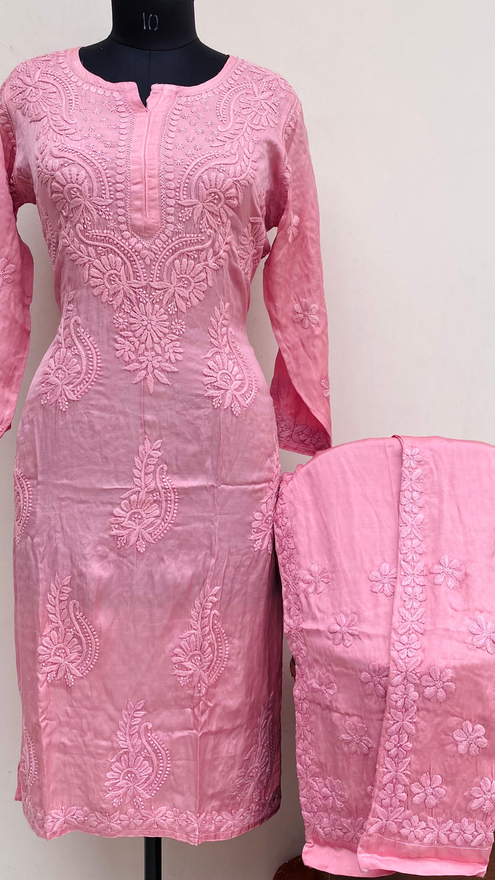 Lucknowi Chikankari Co-ord Set Pink Muslin Cotton With Self 3D Work