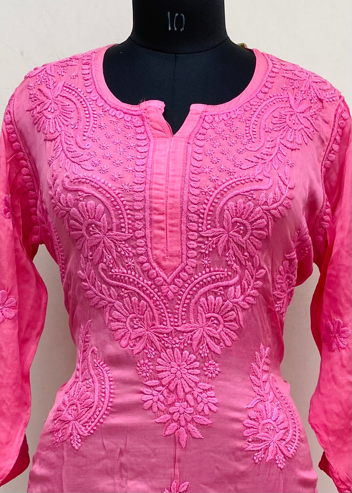 Lucknowi Chikankari Co-ord Set Pink Muslin Cotton With Self 3D Work