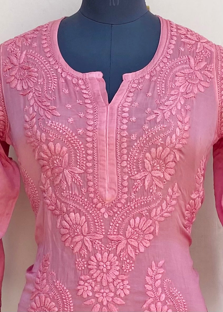 Lucknowi Chikankari Co-ord Set Pink Muslin Cotton With Self 3D Work