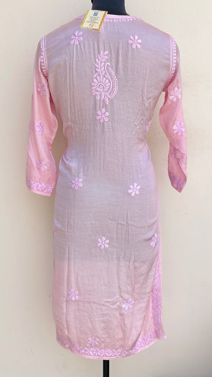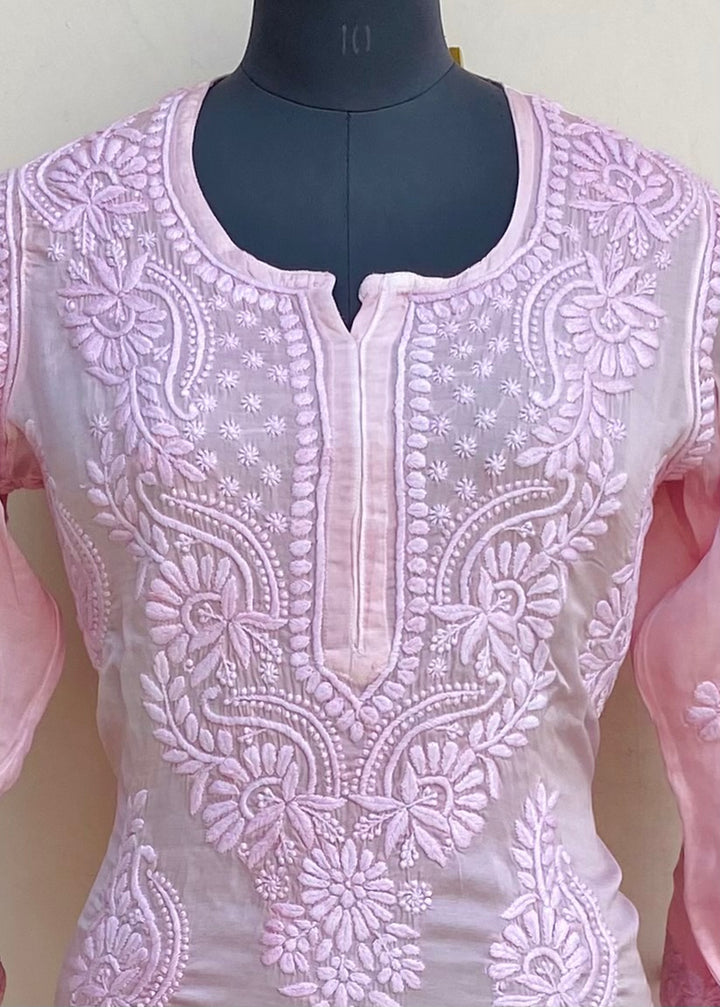 Lucknowi Chikankari Co-ord Set Pink Muslin Cotton With Self 3D Work