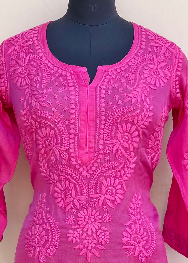 Lucknowi Chikankari Co-ord Set Pink Muslin Cotton With Self 3D Work